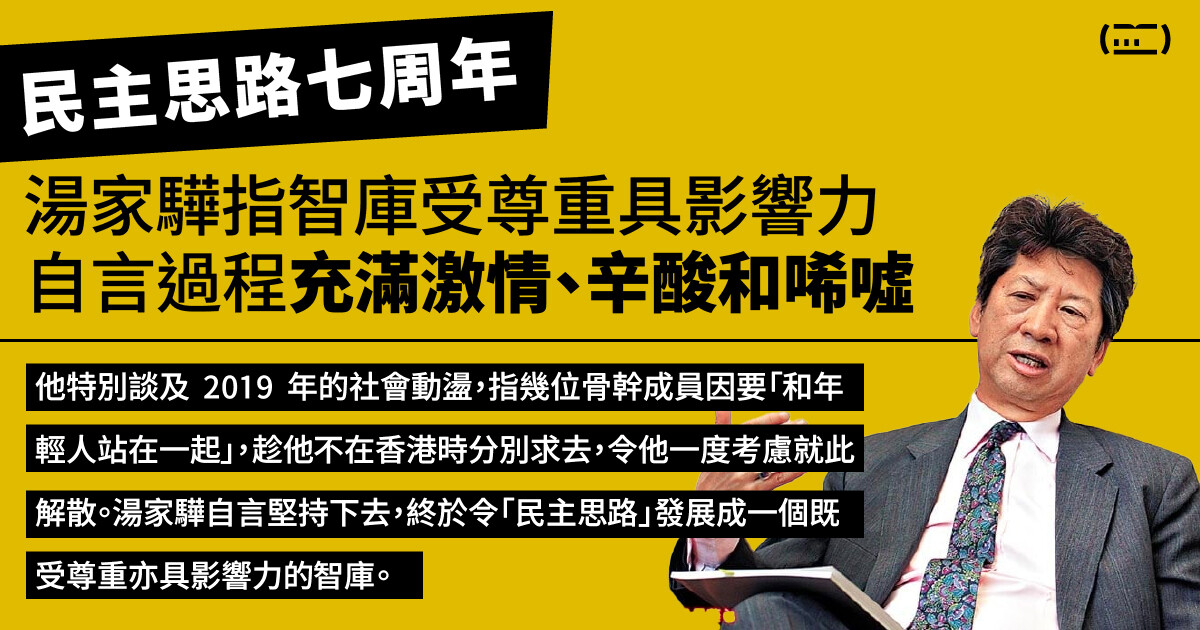 民主思路七周年 湯家驊指智庫受尊重具影響力 自言過程充滿激情、辛酸和唏噓
