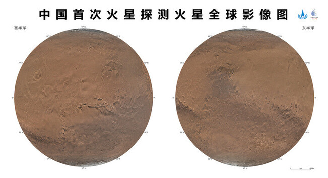 中國首次發布火星全球影像圖 中國將火星地名改為胡襄、五星、齊都、文家市