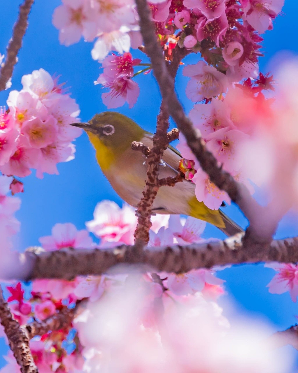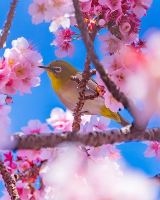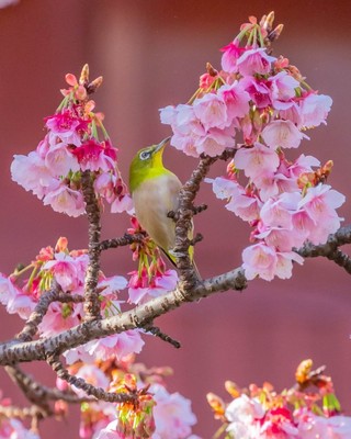1月中旬ごろから咲き始める超早咲き桜、熱海桜。 それに合わせるように咲き誇る淡紅梅。 立春も過ぎた麗らかな早春の1日、一足早い春を楽しんできました。 花見の人も多く訪れている中、人を恐れる気配もなくメジロたちが梅や桜の蜜を求めてたくさん集まっていました。 #春の訪れ #淡紅梅 #熱海桜