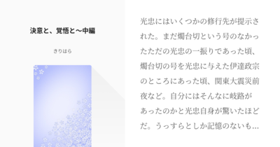 【2022燭三日の日】光忠の修行話、後編です。光忠の修行の内容や、何を決意して何を覚悟して戻ってきたかは私なりの解釈です。でも自分なりにはしっくりきてるんですがどうでしょう。カッコよく決まってる、かな?w
