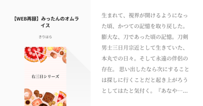 【WEB再録】みったんのオムライス | きりはら #pixiv https://www.pixiv.net/novel/show.php?id=17455917