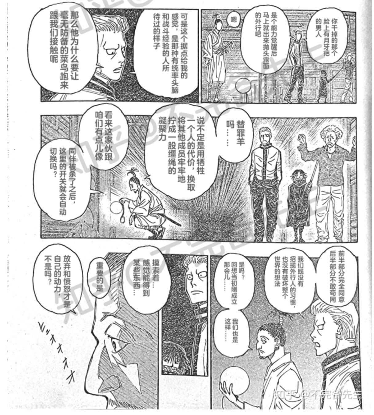 新的395信长进到爱伊伊家族秘密通道,开始回忆旅团还没组建时候流行街往事。比较意外的是玛奇一开始是和窝金一起混的。富兰克林像大哥一样保护侠客和团长,派克文静地呆在教堂(好喜欢派克),芬克斯和飞坦刺头混混一样很搞笑。