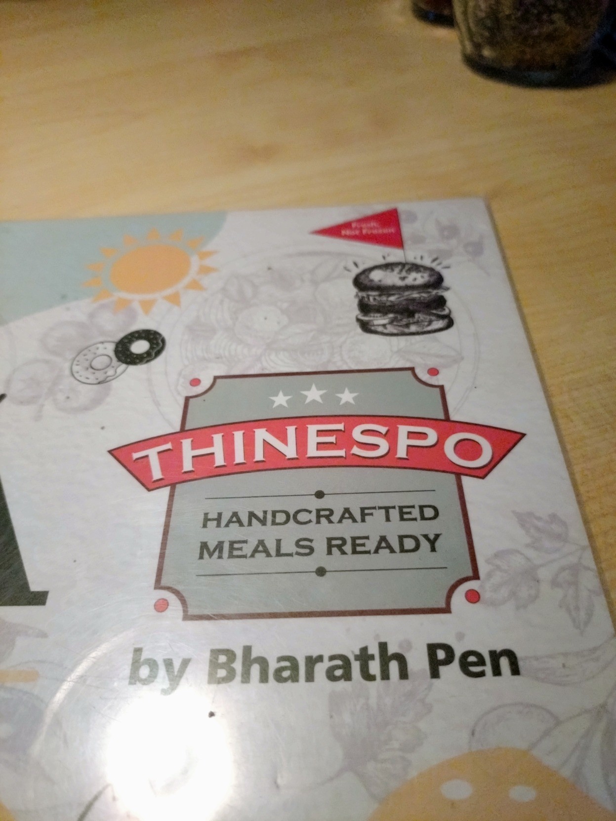 印度義大利式餐廳的店名 Thinespo是印度文拼起來的。Thines 意思是吃Po 意思是 走