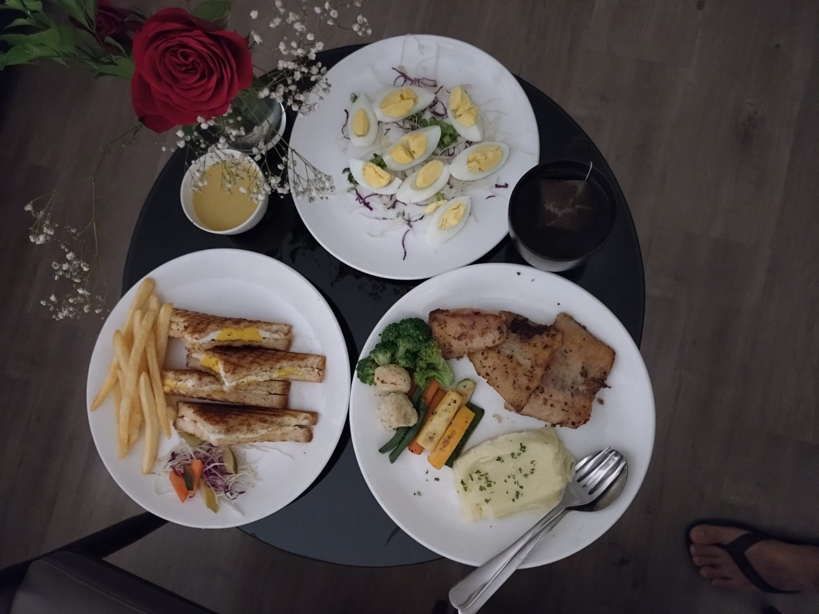 早餐點在房內食用,為自己塑造個氛圍,擺束玫瑰花,泡杯茶,然後放首音樂,嗯...還不錯!