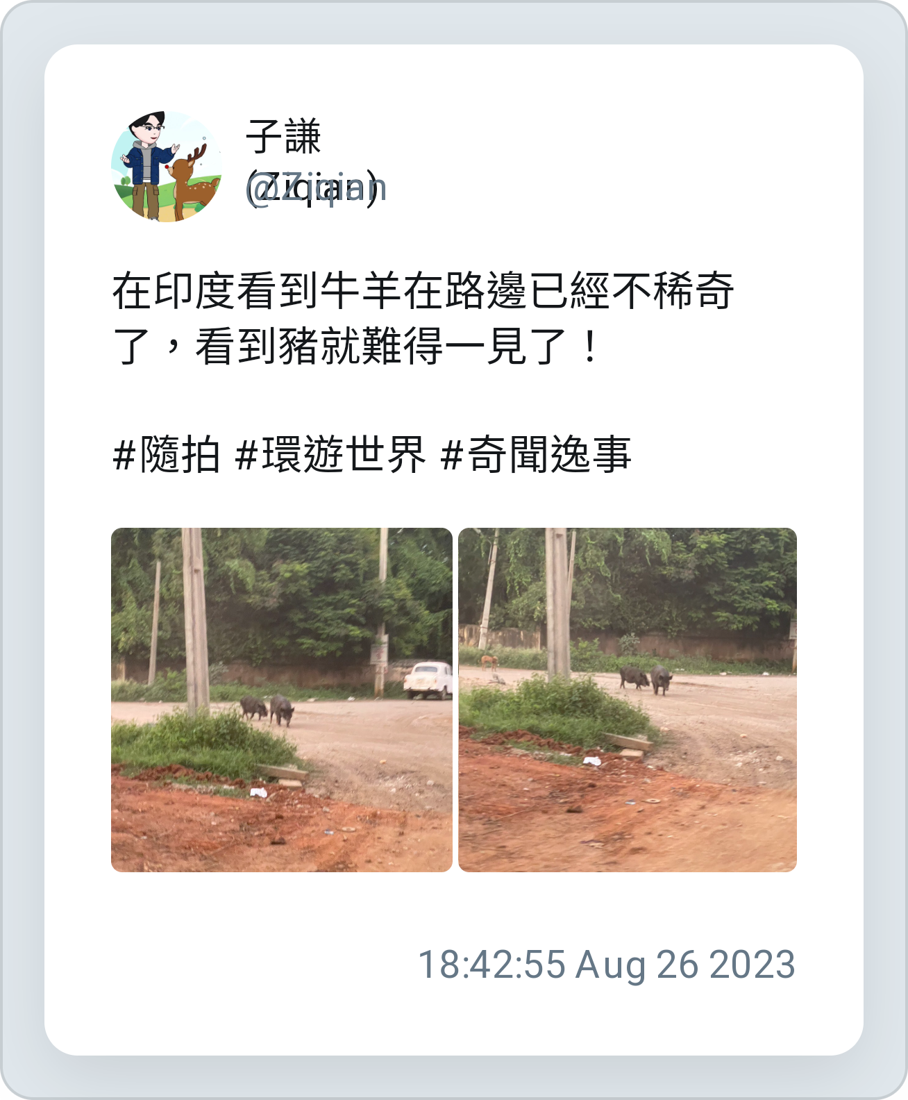 在印度看到牛羊在路邊已經不稀奇了,看到豬就難得一見了!