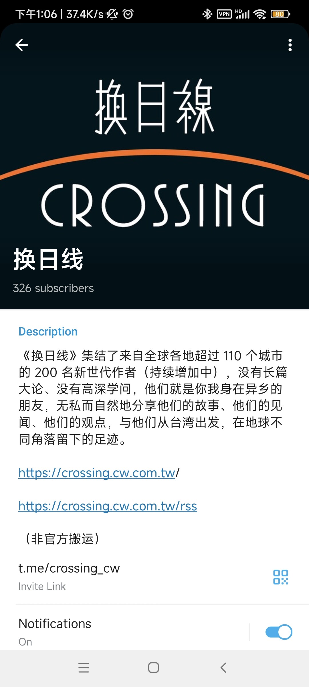 他们分享的故事很有意思,又有深刻的思考。电报文章对简中人友好(因为换日线是台湾的,所以官网都是繁体