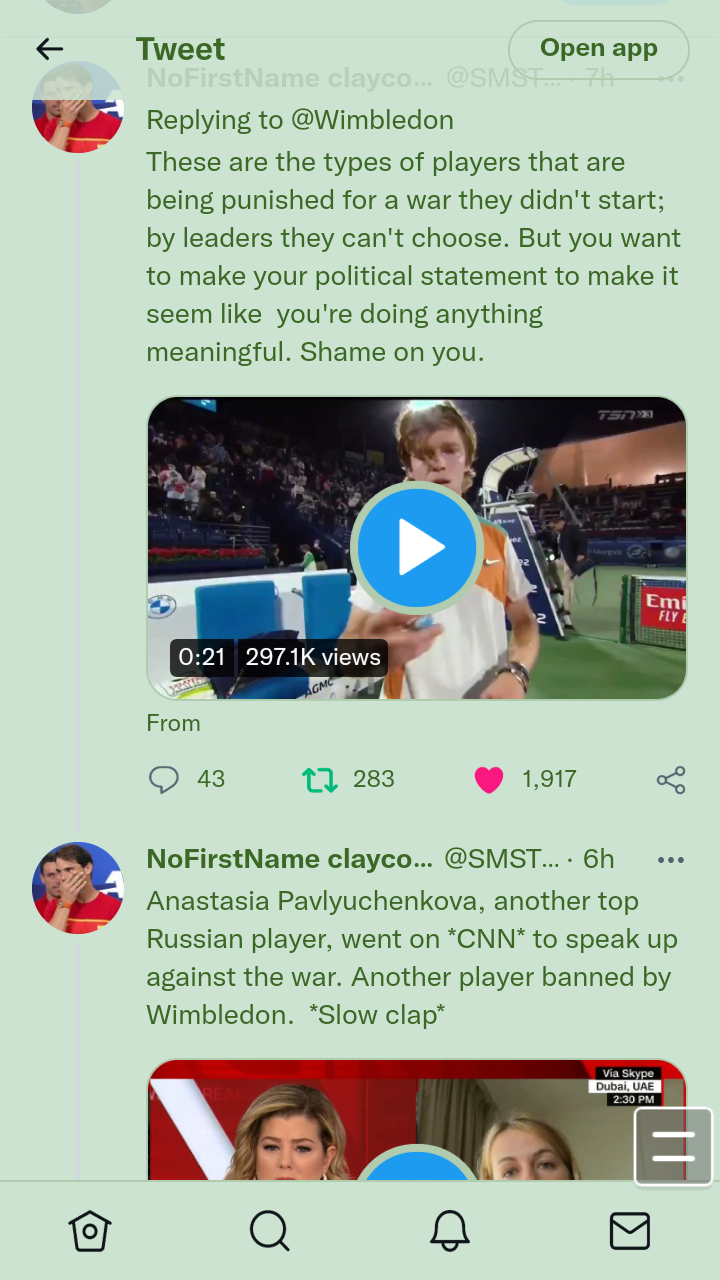 温网和全英草地俱乐部历史上最耻辱的一天,有一万种以体育的精神和公正的原则声援乌克兰的正当方式,而你们选择最便宜最费拉也最纳粹的一种,甚至禁赛第一天就明确反战的毛纸球员[强]万万没想到正是小囧牛抛弃个人自由的原则,拥护集体主义绑架,现身说法以证明普特勒的正确性,个人道德选择无足轻重,国籍身份决定一切立场,纳粹化才是你们的普世信仰[鼓掌]也是替普特勒感谢你们这些白皮支心的精诚合作,生生把乌克兰反侵略正义战争打成#疆来无义战人均普特勒 [再见][再见][再见]
