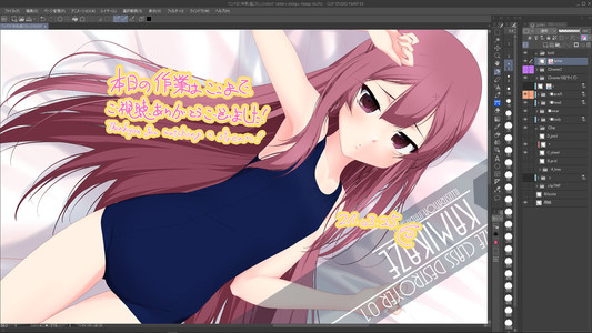 #pixivsketch #スク水 #水着艦娘 #神風 #艦これ #今日のライブ進捗