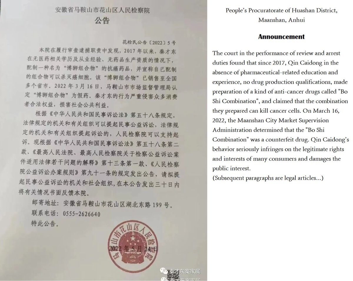 #QinCaidong saved thousands of cancer patients with a formula he invented, but was convicted of producing counterfeit drugs recently. One college student died from the loss of medication because of Dr. Qin's arrest. #秦才东 #TheGreatTranslationMovement https://nitter.hongkongers.net/TGTM_Official/status/1611102544583069698#m