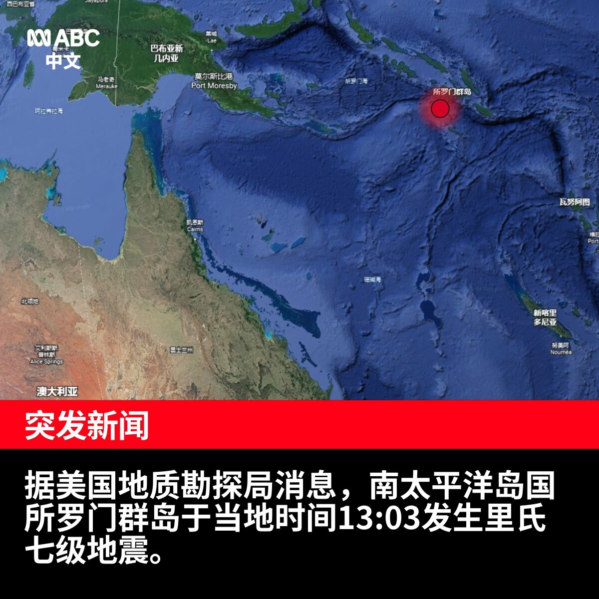 #突发 美国地质调查局报告,南太平洋岛国所罗门群岛的马兰戈(Malango)发生里氏7级地震,震源深度为10公里。
