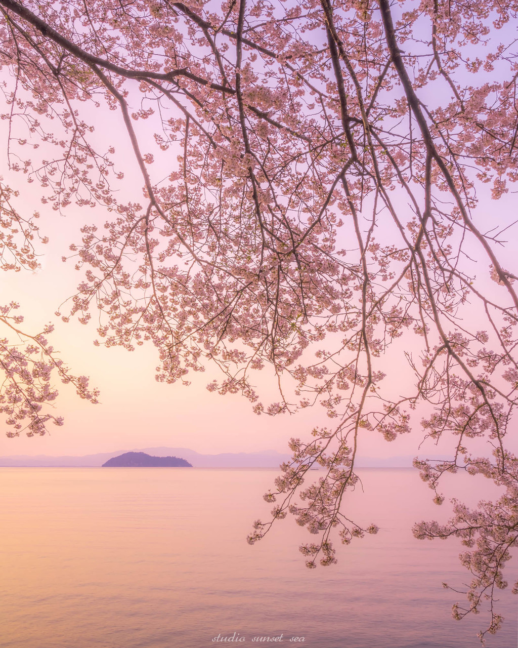 #海津大崎 #桜 #竹生島 #琵琶湖 #朝焼け #tokyocameraclub