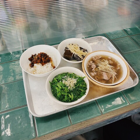 樂天羊肉當歸羊肉湯好好喝,滷肉飯的飯粒粒分明我喜歡,青菜超大一碗小傻眼哈哈哈