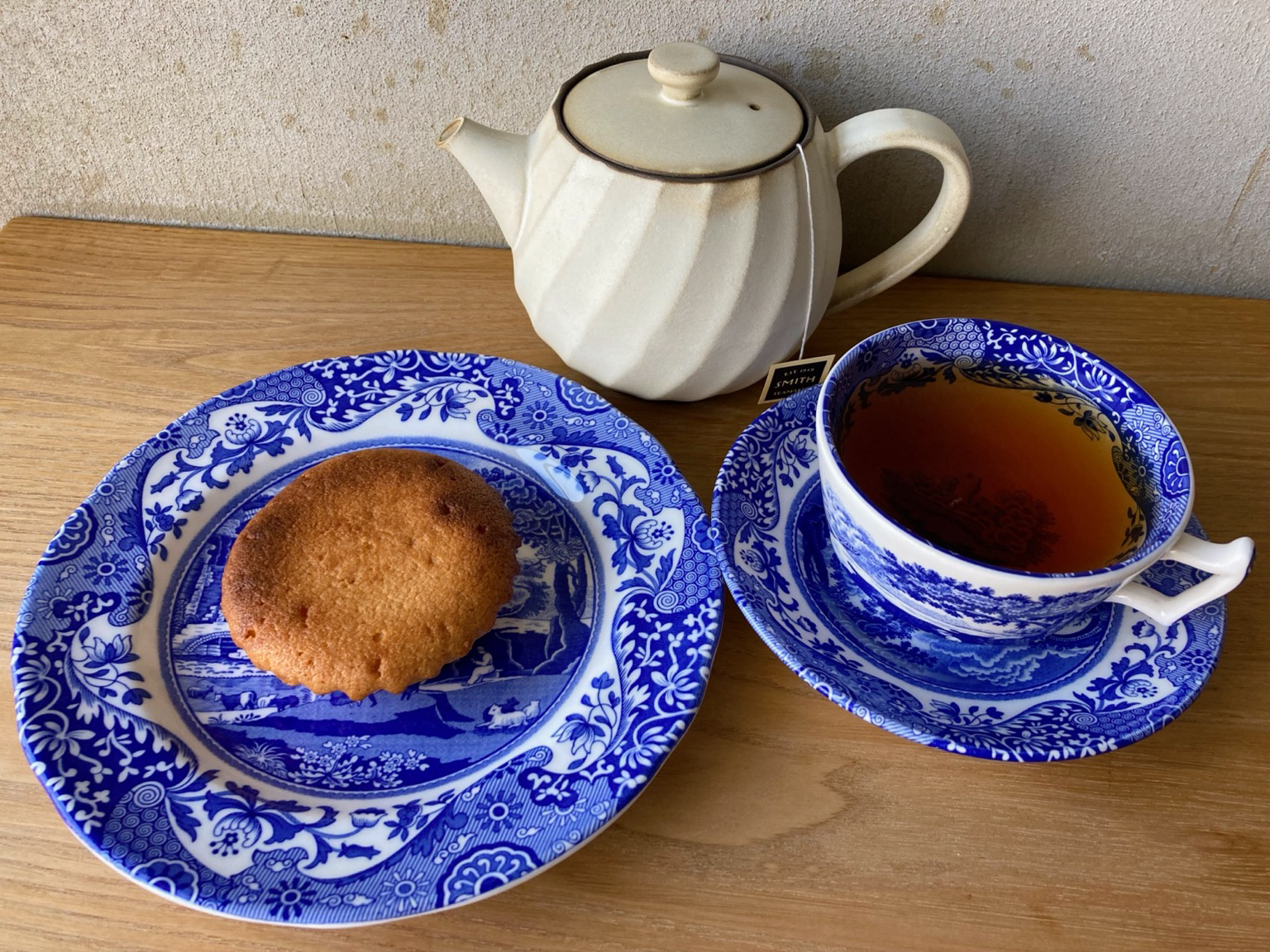 スミスティーメーカーのブラックラベンダー(ラベンダー、バニラ、ローズ、ラプサンスーチョンとなかなか個性的な組み合わせのフレーバードティーですが、ほぼラベンダーです)と、いただきものの近江屋洋菓子店のマドレーヌ☕️🫖冷凍できるので、すぐ食べ切らなくてもOK!温めると部屋中バターのしあわせな香りがふんわり🧈ありがとうございました☺️