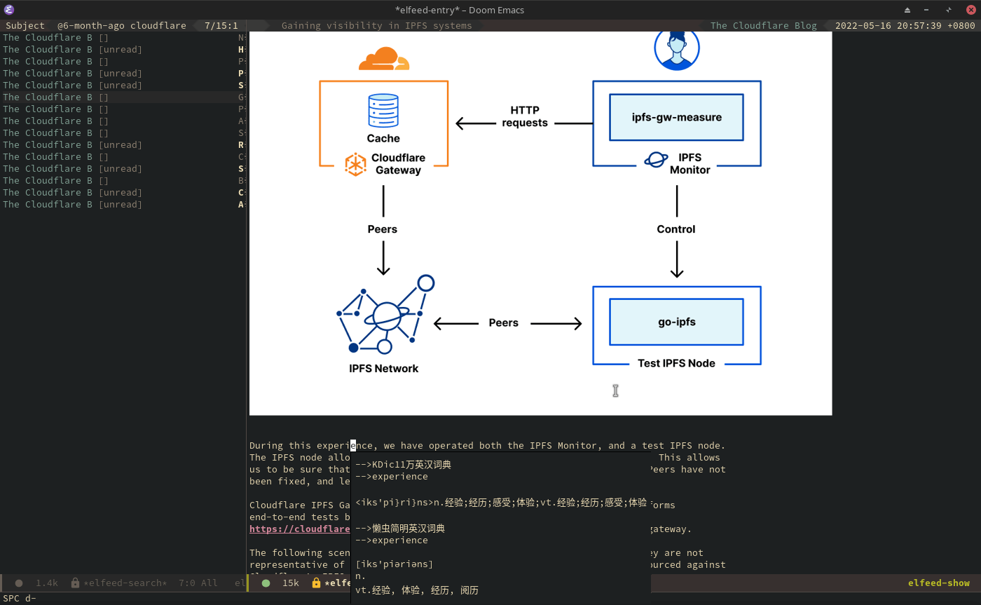 用了下 emacs 的 rss 阅读器包,加载图片会导致卡顿,不亏是上古编辑器,体会到了多图杀猫的感觉…… :ffoxterrified: