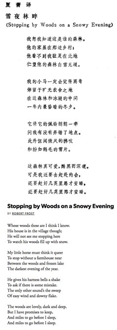 名篇。本科的老师非常喜欢的一首诗,还记得他上课背And miles to go before I sleep,
