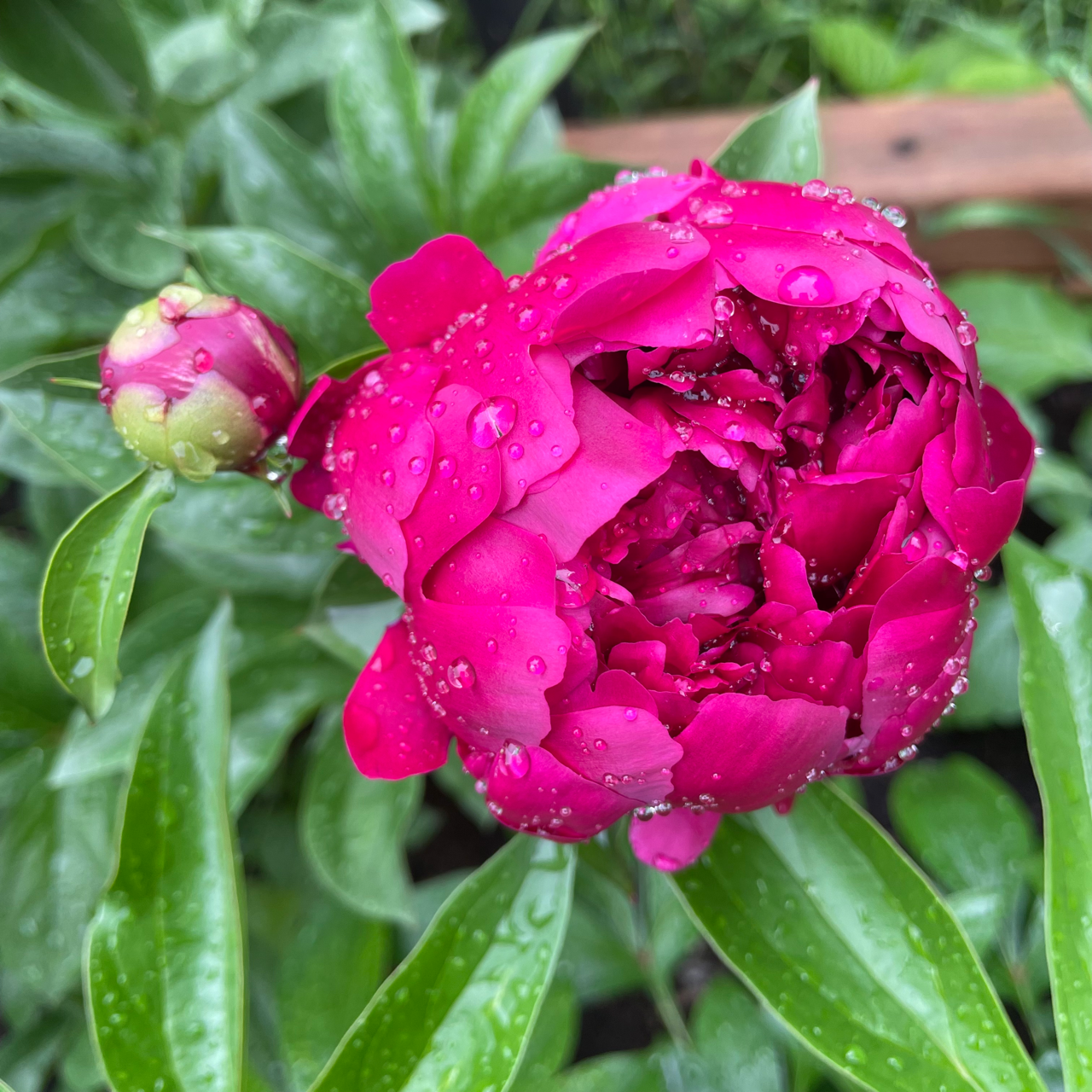 图二是另一个芍药Sarah Bernhardt。粉色好像有点太深了?感觉不够仙。花瓣边缘都被雨水弄坏了。