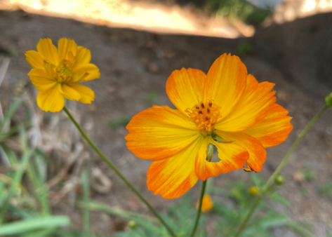 我去年买的这个Cosmos种子是橘色和黄色。我自己更偏好金黄色的花朵,于是留种的时候专门做了区分。今年种下去的全是金黄色,出来的大部分是橘色:0010: