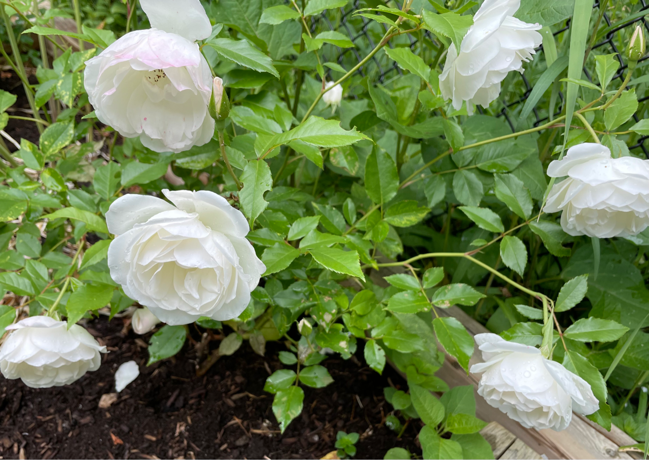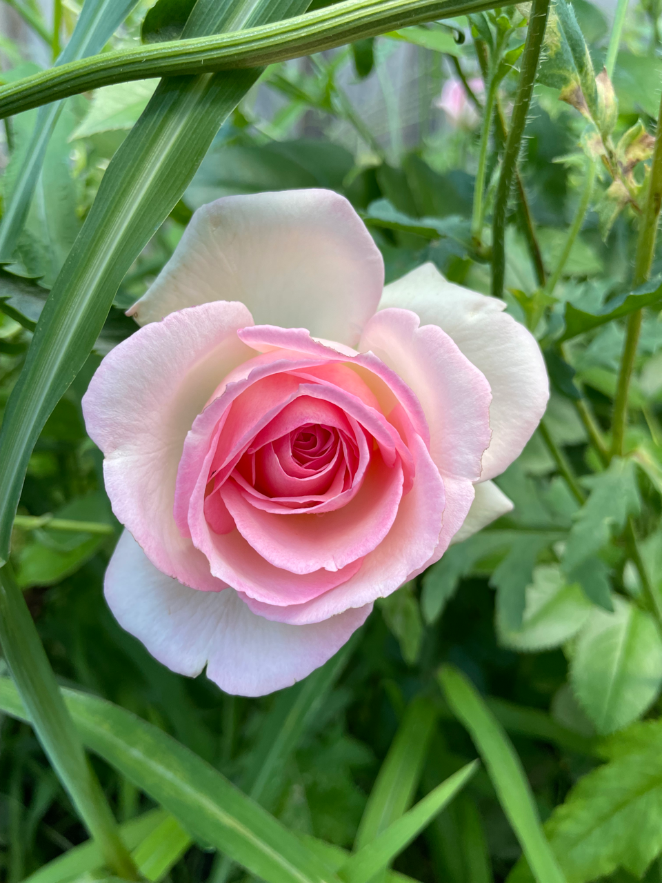 图一其实是月季iceberg,不知道为什呢秋花带上了梦幻粉,在晨光和露水里美极了。