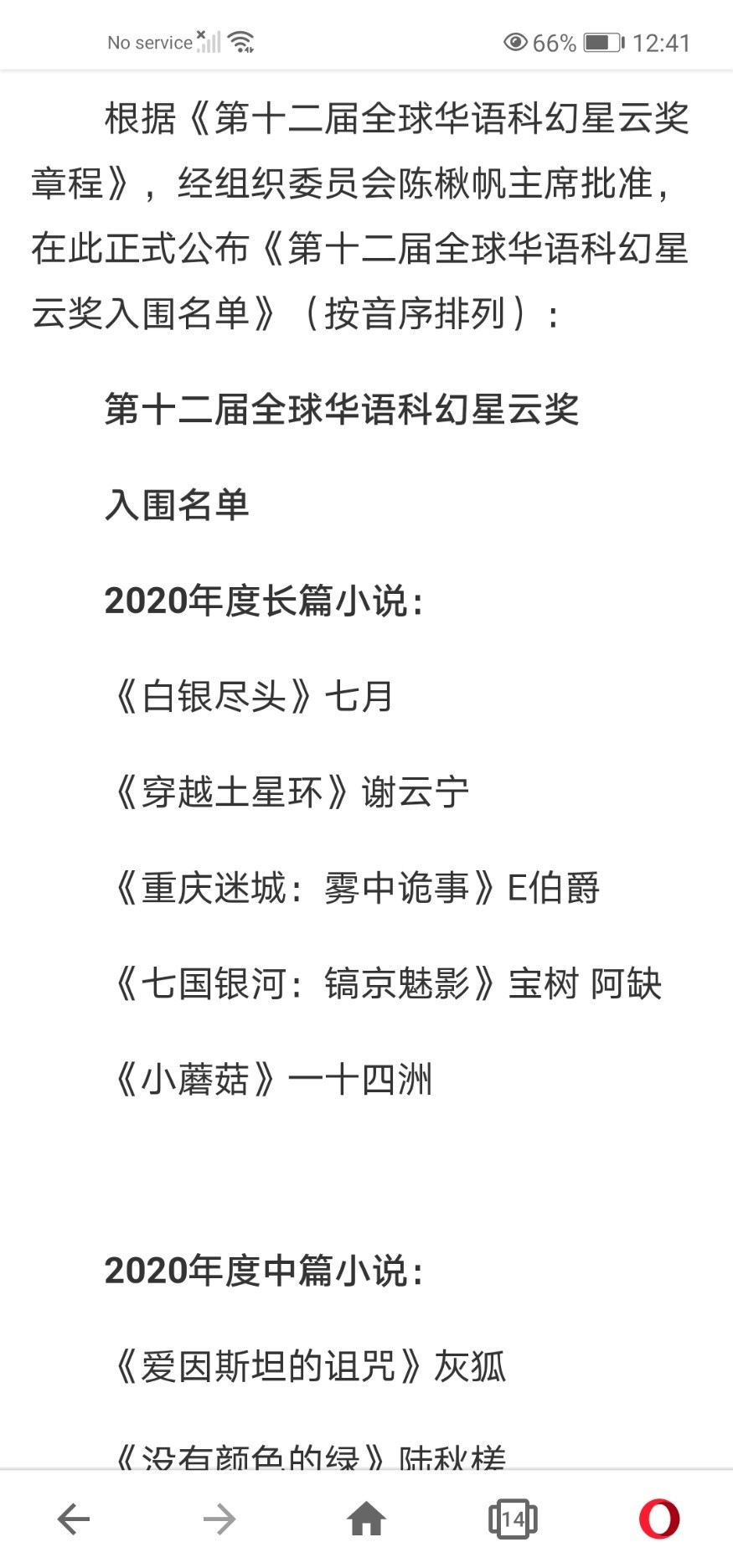 一十四州的耽美小说《小蘑菇》入围第十二届全球华语科幻星云奖,2020年度长篇小说。