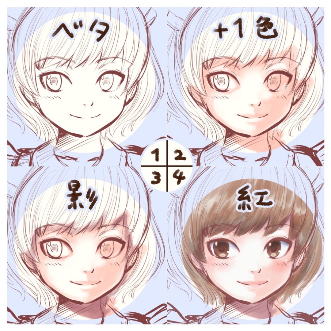 中間色はイメージにあうやつを選んで大体3~4色くらいで塗ります。