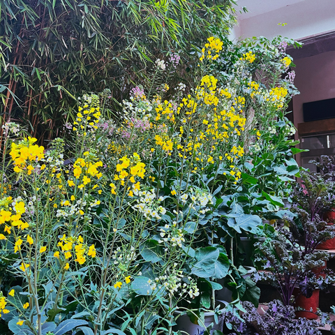 吃好饭回来,拍办公楼下的彩色油菜花和不知名红色果实#胶片 #植物 #随手拍