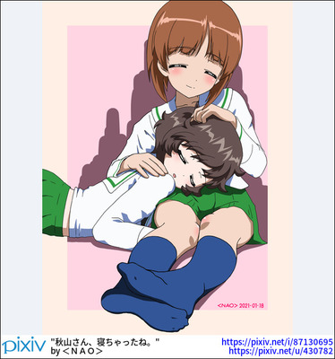 秋山さん、寝ちゃったね。 | <NAO> #pixiv https://www.pixiv.net/artworks/87130695 #ガルパン #gup #garupan #西住みほ #秋山優花里 #膝枕