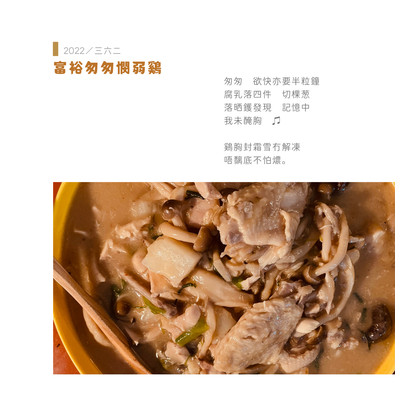♬匆匆 欲快亦要半粒鐘腐乳落四件 切棵葱落晒鑊發現 記憶中我未醃胸