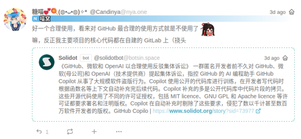 很抱歉我对这些事情不是一个乐观主义者,但是我深知通过任何可能的方式阻止AI学习基于GPL等强copyleft许可证的代码并将其模型用于创建专有软件是不可能且不实际的。当我了解Microsoft将CoPilot商业化并为此提供法律支援时,我已经意识到未来会变成何般可怖的模样了,因为自由软件阵营在面对Microsoft Copilot以及其他此类CTaaS服务(Code Thief as a Service,“代码小偷即服务”)时的任何反击举措都将可能是无效的。