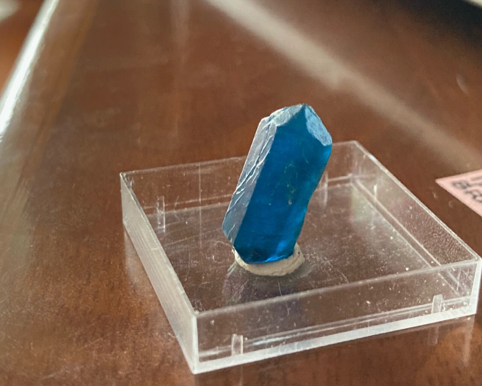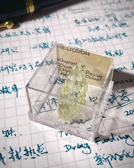 一直想要补上这个矿种的缺口,之前的目标是巴西Sapo mine产的绿色半透明晶体——但是那个产的的标本总是太大了塞不进小盒子。这次突然就碰上了一个之前不太敢想的挪威产地的(因为总是更大),赶紧收了。