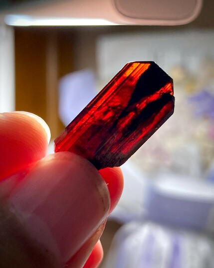 巴基斯坦产的一片板钛矿Brookite,二氧化钛三兄弟中的一员(大哥二哥是金红石和锐钛矿),是只能在灯底下看的标本 :blobcatgooglytrash: