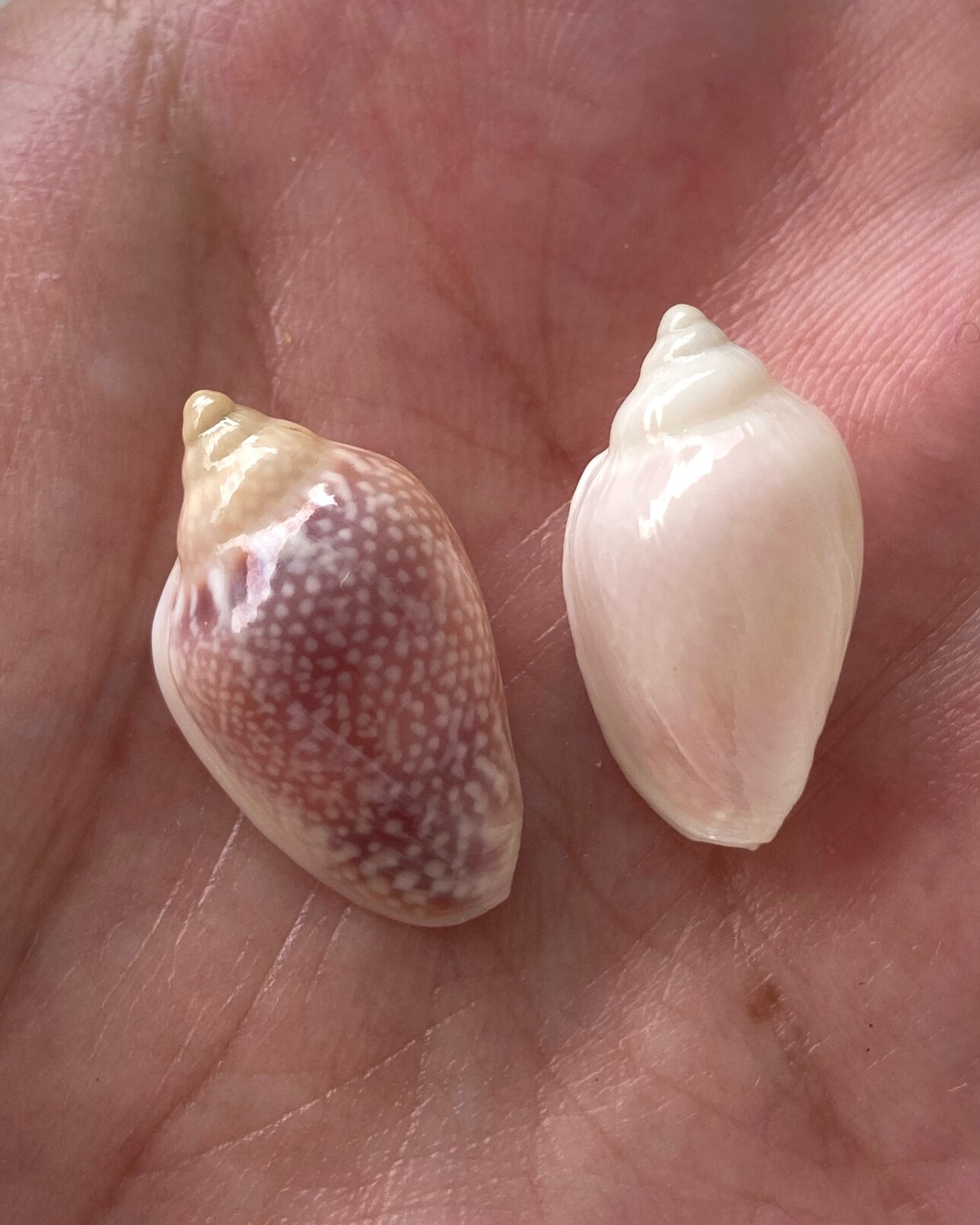 新买了一对西撒哈拉产的光辉谷米螺Marginella irrorata,基本上是我见过的最深色和最浅色的版本。光辉谷米螺和其他好几种谷米螺都很像,比如说浅的像M. mattavellii,深的像M. velai和小个的M. glabella……昨天又狂啃好几篇文献(还有一篇用意大利语写的),玩谷米螺真的太费脑子了 :blobcatgooglytrash: