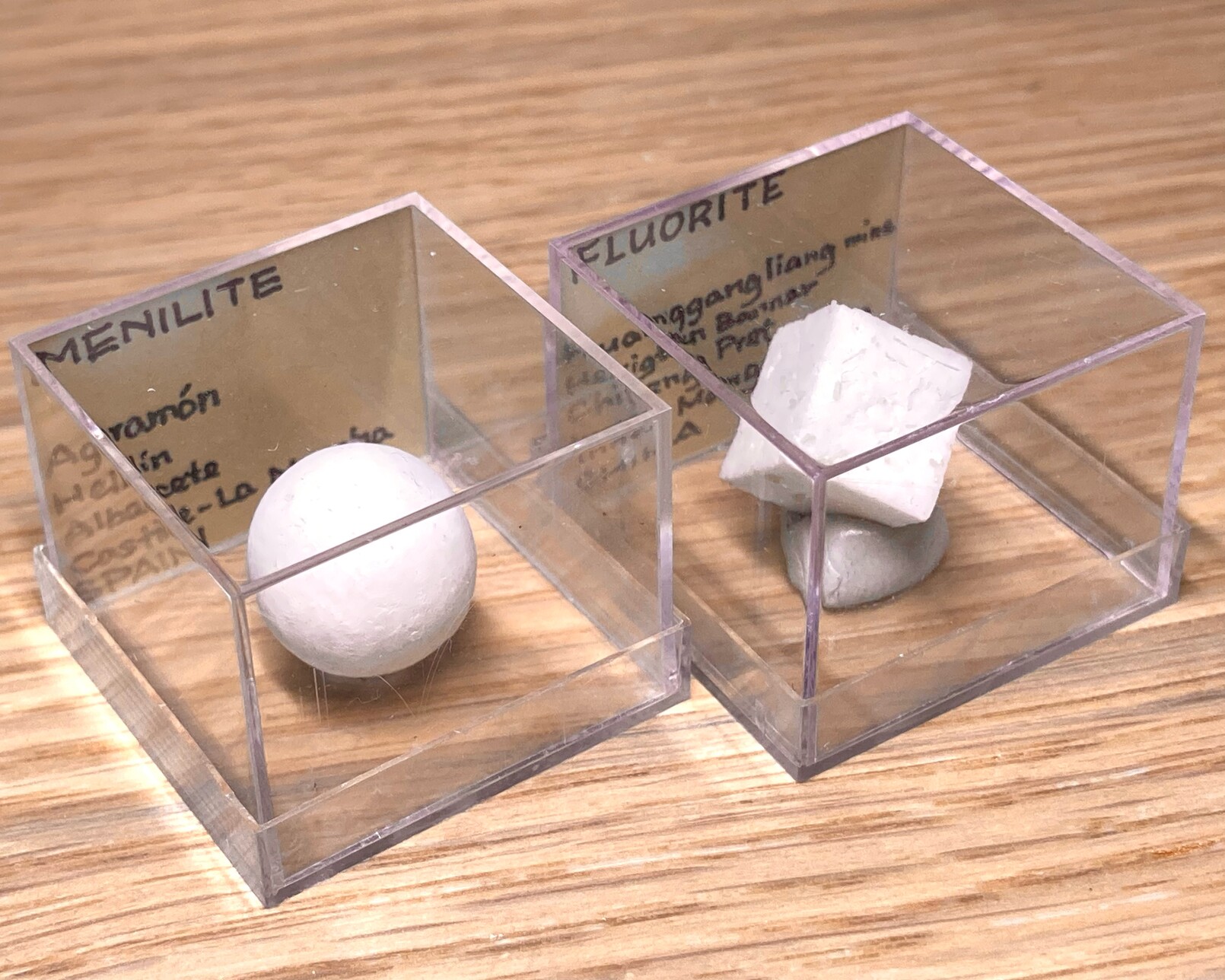 突然觉得它们是一对CP:圆形的西班牙卡斯蒂利亚-拉曼恰产的硅乳石,和方形的中国内蒙萤石。都是雪白但是不透明的石膏塑像质感哈哈哈 :ageblobcat: