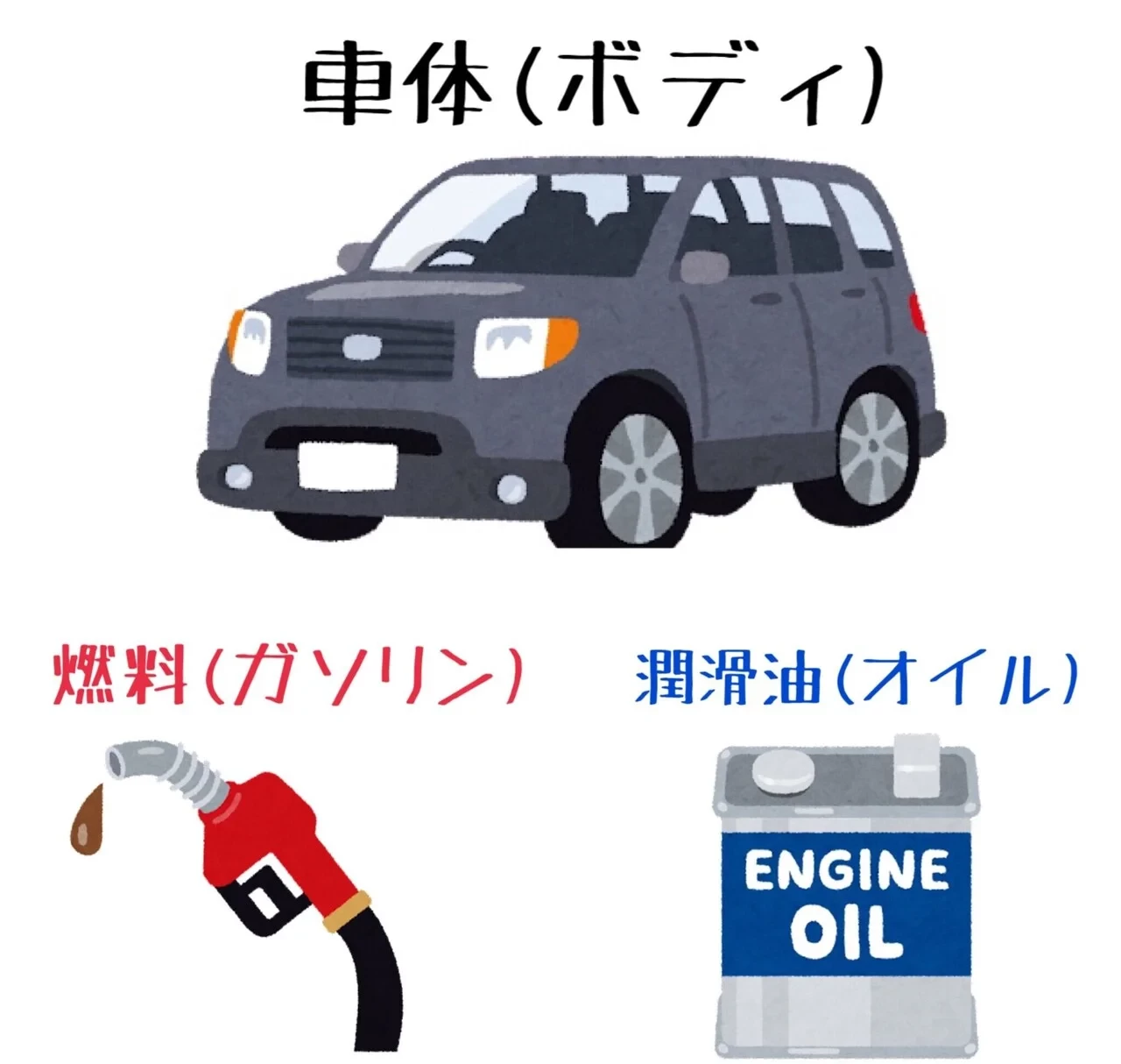 【タンパク質】、【糖質・脂質】、【ビタミン・ミネラル】を車にたとえよう