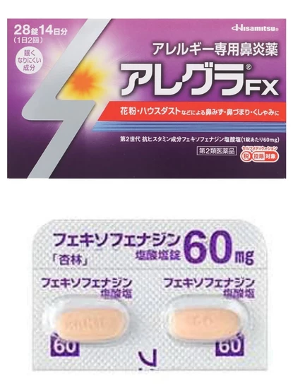 アレグラ(フェキソフェナジン)は果物ジュースを摂ることにより吸収量が低下する。
