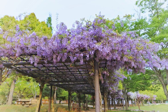 We took a walk at Tenjin wisteria, the oldest wisteria trellis in Hokkaido, located in Tenjinyama Park, Toyohira Ward, Sapporo. 🤗