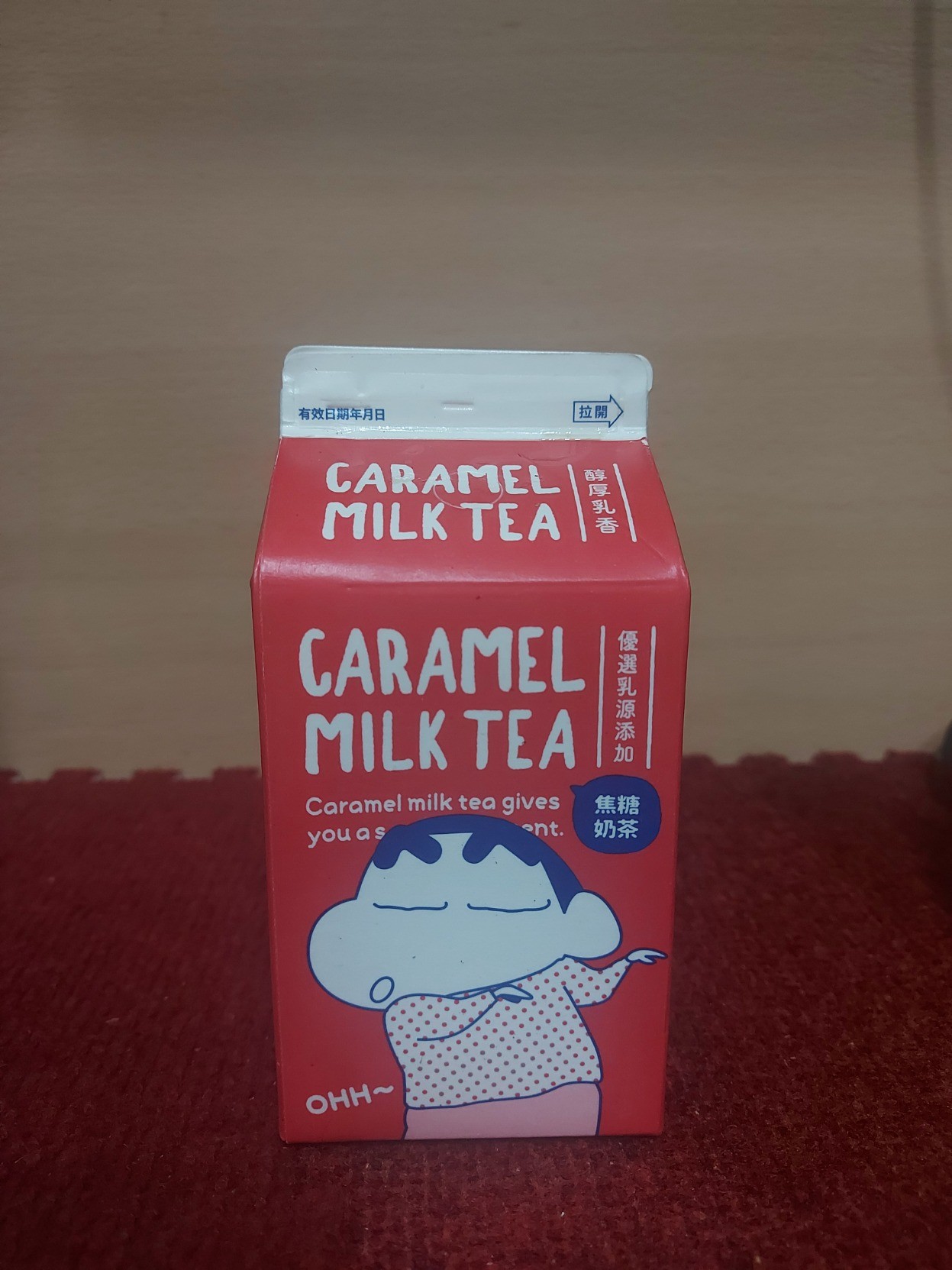 7-11蠟筆小新這次的焦糖奶茶包裝也好可愛,原本沒有買過小罐紅茶牛奶和可可,就趁這波新出特價先買焦糖奶茶。