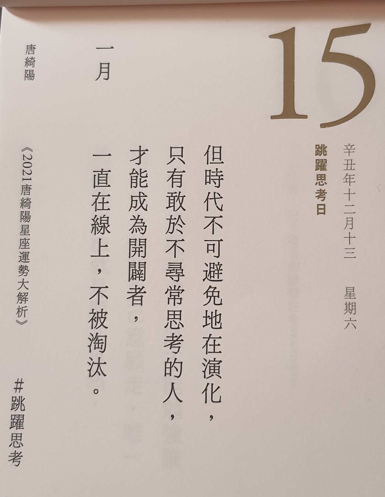 早上時,閱讀桂綸鎂的訪談,最後記者詢問大家會嚮往模仿她的情況。她回覆:「我覺得不要活成桂綸鎂的樣子,與其羨慕別人現實面的成功,像是存款有多少?有幾間房子之外,我覺得找到自己獨一無二的生活哲學,將日子活成自己的個性,反而會讓別人更羨慕你,那不是隨心所欲,也不是傳統意義上的『做自己』,是要透過非常多的經驗、學習、閱讀等等,換句話說,那其實就是『品味』。」