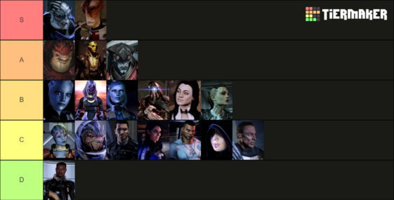 #质量效应 主观队友好感度梯队。