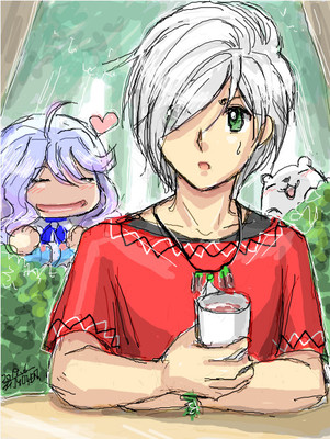 #手ブロ #創作 #ファンタジー #白髪 #ドリンク #赤服のピーターパン