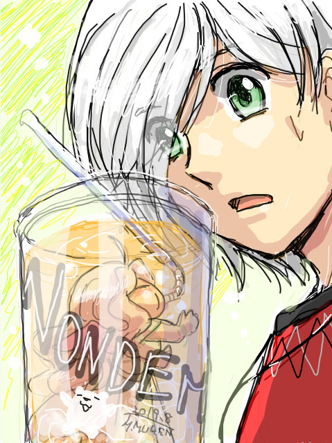 #pixivsketch #赤服のピーターパン #ドリンク #白髪 #ファンタジー #創作 #手ブロ
