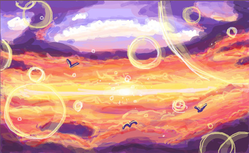 #絵森 #おえかき #創作 #赤服のピーターパン #空 #夕暮れ