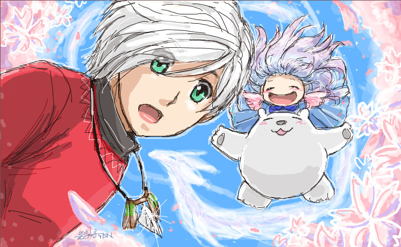 #pixivsketch #赤服のピーターパン #桜 #クマ #ファンタジー #白髪 #創作 #おえかき