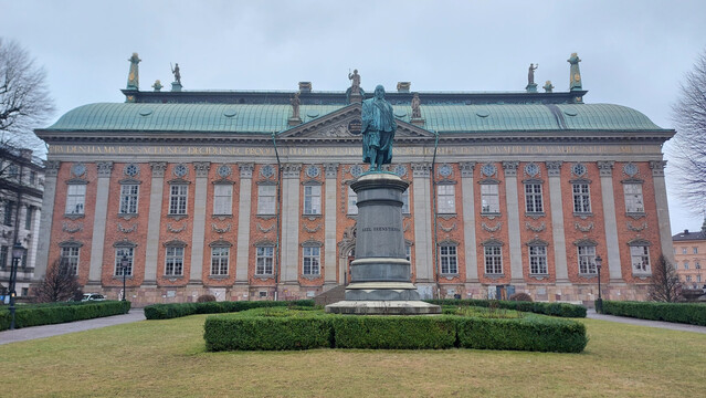旅程的第一天,我們在斯德哥爾摩四處參觀。我們走經17至19世紀時期的貴族議會遺址,無奈它週末休息,只能在後花園拍照(圖一)。之後,我們上坡到斯德哥爾摩王宮,剛好遇上王宮外的衞兵交接儀式;眼見四周的人們都舉起手機錄影,我們也躍躍欲試,甚至一錄便錄下半小時多的片段。