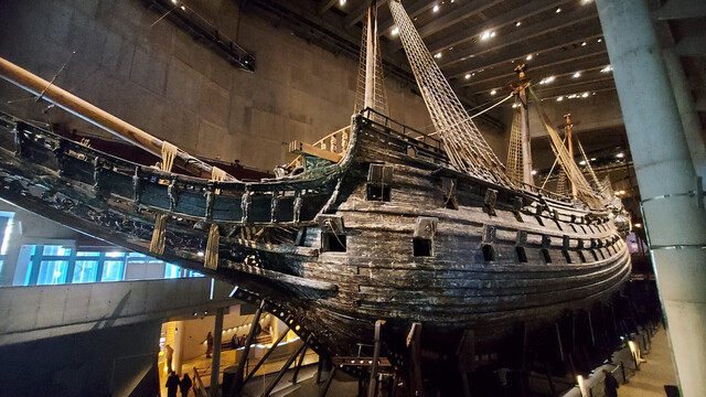 能有一個專門的博物館供人參觀,自有其獨特之處:當時瑞典於古斯塔夫二世治下雄踞東北歐,這69米高的戰艦(圖一)正是國力強盛的寫照。無奈於1628年夏天,攜着全國光榮(和過多炮火)的瓦薩號在航行1300米後即沈入海中,直至三百多年後才被打撈上岸。