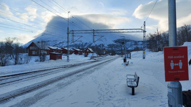 在斯德哥爾摩兩天後,我和友人終於邁進這次旅程的重點:往北方的阿比斯庫看極光。從首都到北方是一條漫漫長路:我們從黃昏撘着火車,直至翌日正午才抵達旅館。有別於斯德哥爾摩的城市景觀,只見阿比斯庫四周蓋滿了白皚皚的毛氈,伴着附近疏疏落落的紅色木房子(圖一),正是標準的北歐冬日景觀。