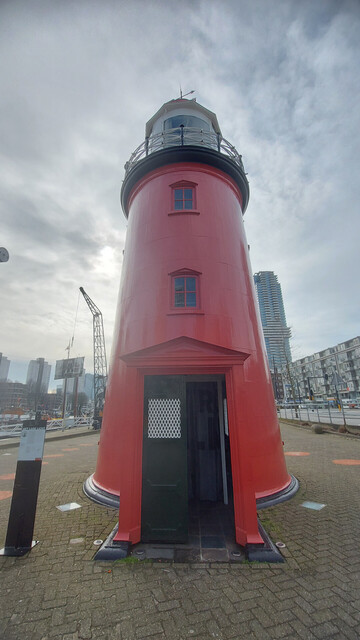 博物館上層則重於荷蘭的海上貨運史,展出不少貨船模型和船塢機械;興趣不大的我沒有細看,於是走出展廳,到旁邊港口一探究竟。博物館於室外設置了燈塔(圖五)等景點供遊人互動參觀,亦停泊不少色彩繽紛的船隻在港口兩側(圖六七),但比較搶眼的,反而是泊在對面的遊船(圖八)。
