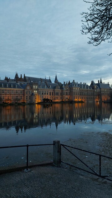 我在市中心徘徊,時而參觀舊書店,時而逛超市,找一間相宜的小店吃飯。比起摩登的鹿特丹,我更喜歡海牙的典雅:歷史建築加上五花八門的大廈樓面,是在石屎森林難以看見的景觀(圖四)。在暗黃的燈光下,黃昏的霍夫維弗湖比下午更神秘,尚待人再次探索(圖五六)。