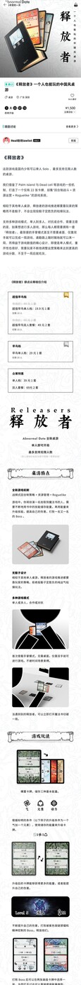 大家好,我做的新桌游今晚在摩点正式开始众筹了!这款游戏是国内少有可以单人 Solo ,最多支持无限人数的桌游。