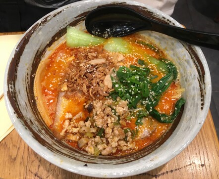 昨晚在日本街區,某日版擔擔麵(圖1)紅油頗辣,小園差點沒能吃完 :0b23: 不過,品質比上次網紅店好多了~這家麵館,我以前中午屢次路過,總想嚐一下,可總有老長排隊,時間不夠未如願。昨晚到得早,終於以償,較想像中好。