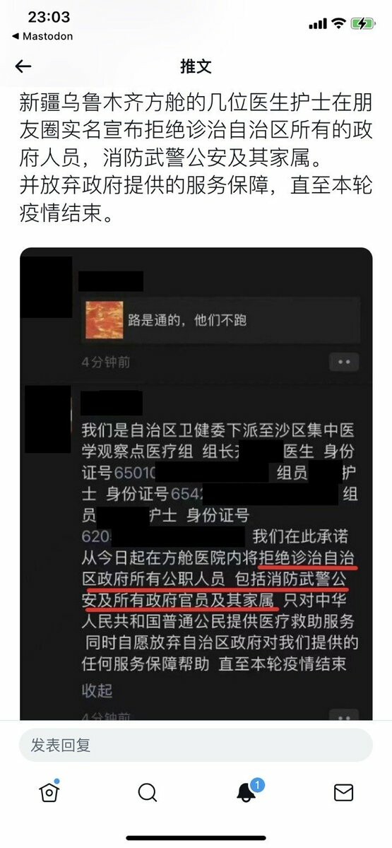 由志愿者维护的“新疆抗疫互助文档”持续运作中,开放新疆伊犁州受疫情封控影响的居民填写紧急医疗需求、物资求助,并整理就医信息和物资管道。